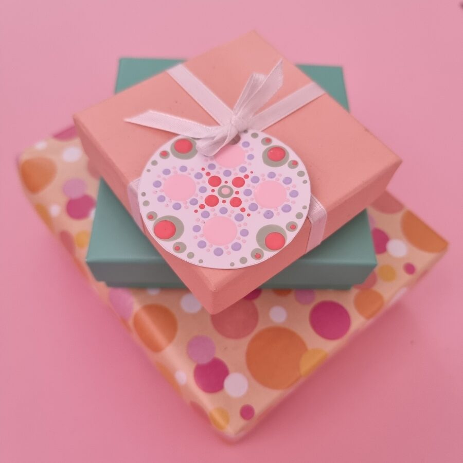 De voorbedrukte stippen hebben een dun gekleurd lijntje, dat refereert aan de kleur van de kunststof Stipstijl-stokjes. Uiteraard kun je ook andere stiptools gebruiken. Als je transparante verf gebruikt, weet dan dat de voorbedrukte lijnen van de stippen, afhankelijk van de gebruikte kleur en lijn, iets door kan schijnen. Ik stip zelf graag met dekkende verfsoorten.