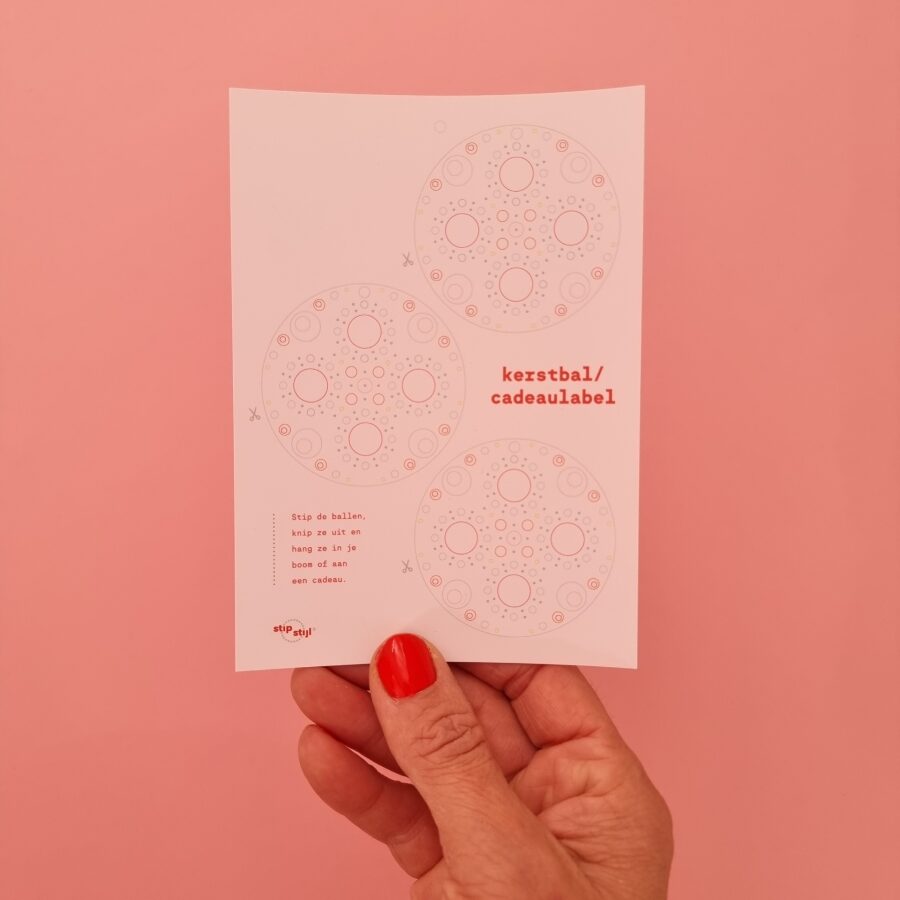 Met deze d.i.y. kerstballen / kadolabels maak jij je eigen kerstdecoratie. Op de kaart zijn drie kerstballen voorgedrukt die je kunt versieren met stippen in je favoriete kleuren.