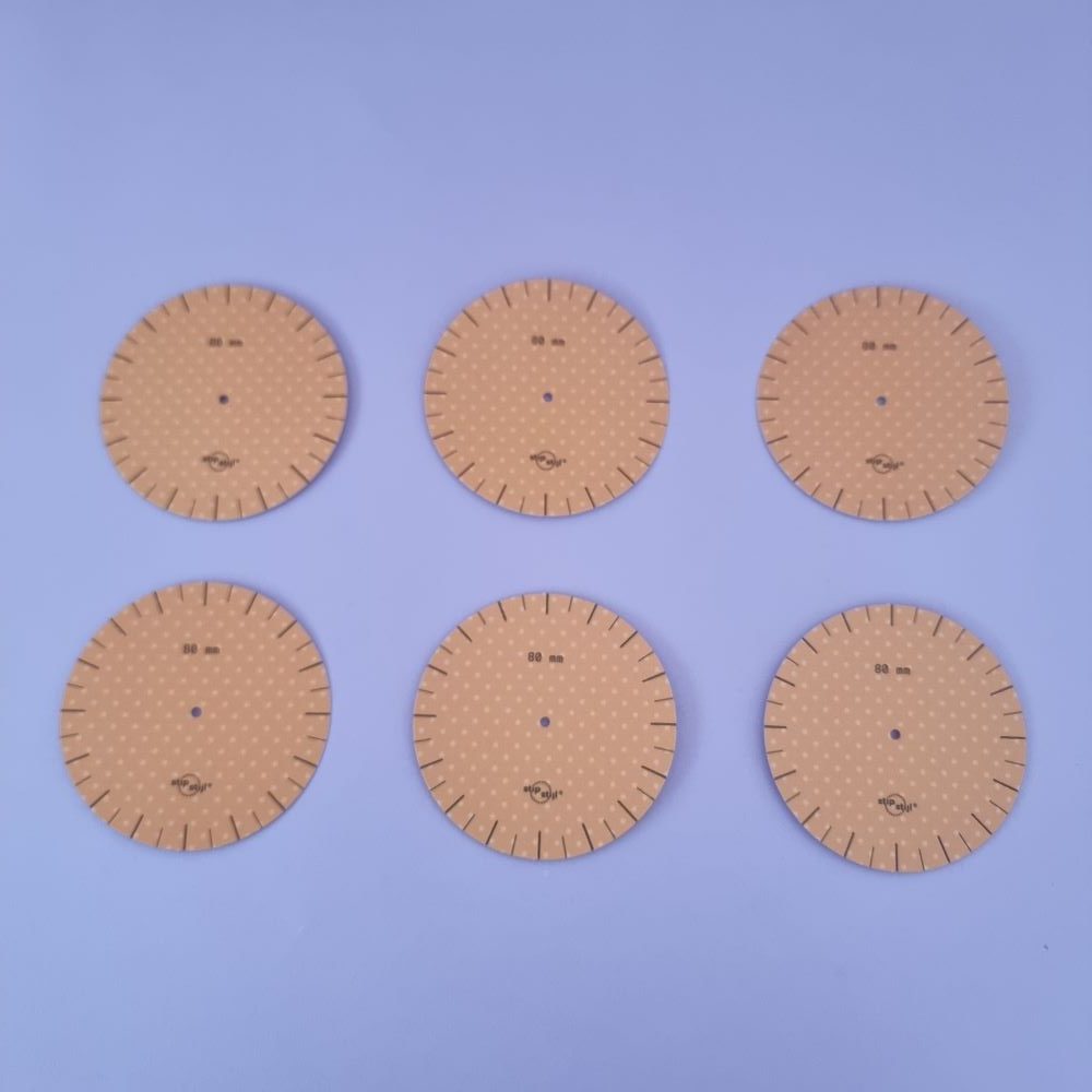 Met deze sjablonen maak je eenvoudig de basis van een mooi stippatroon. Deze set heeft maat 80 mm en bevat 6 stuks. Handig voor als je meerdere cirkels tegelijkertijd op je keramiek plaatst.