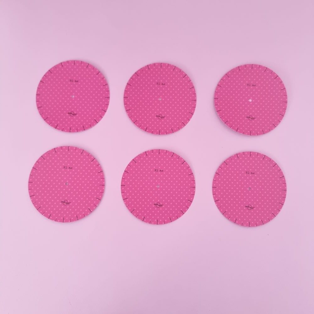 Met deze sjablonen maak je eenvoudig de basis van een mooi stippatroon. Deze set heeft maat 95 mm en bevat 6 stuks. Handig voor als je meerdere cirkels tegelijkertijd op je keramiek plaatst.