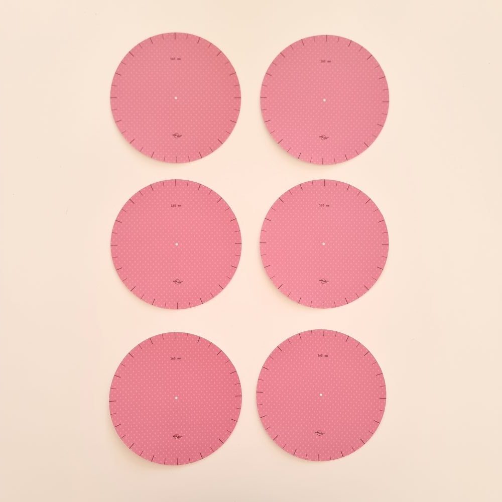 - In totaal zijn er 25 maten sjablonen van 15 mm tot 180 mm. Elke maat heeft een eigen vrolijke kleur, zodat ze eenvoudig te herkennen zijn.