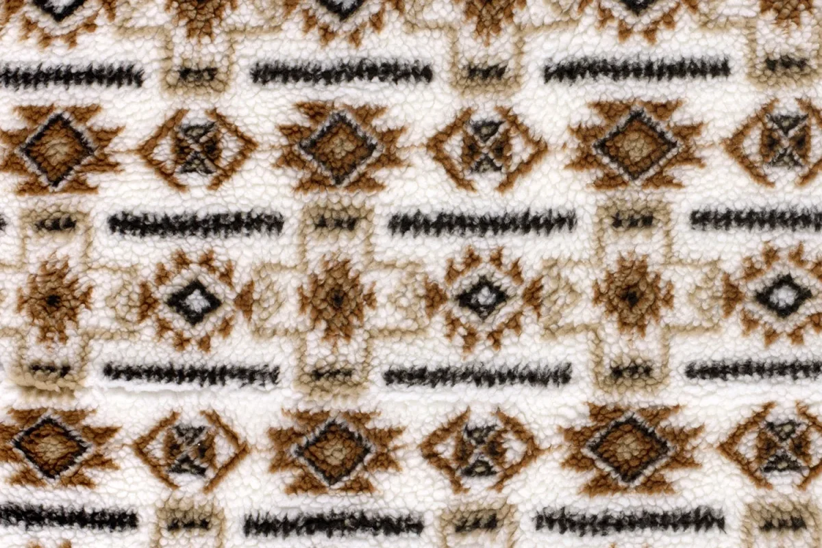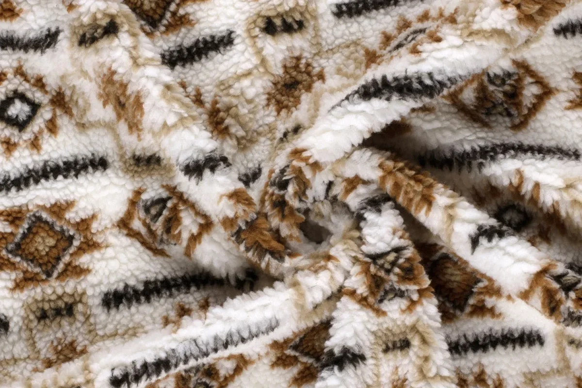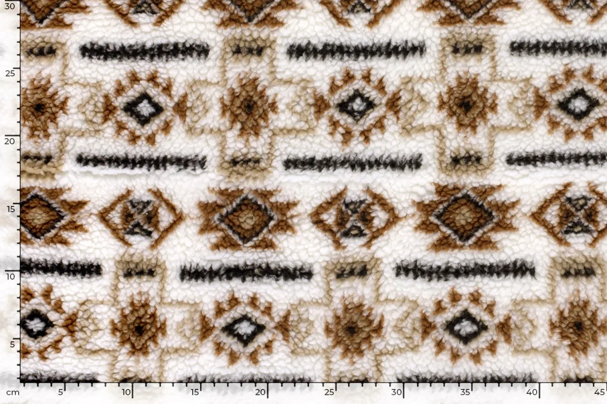 Mooie borg fleece stof met een abstracte print.