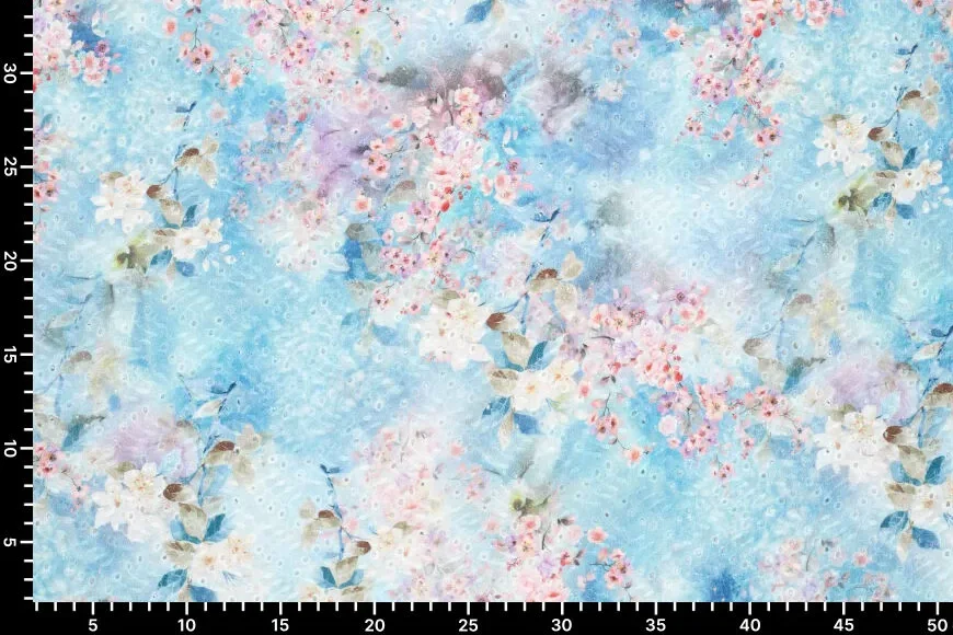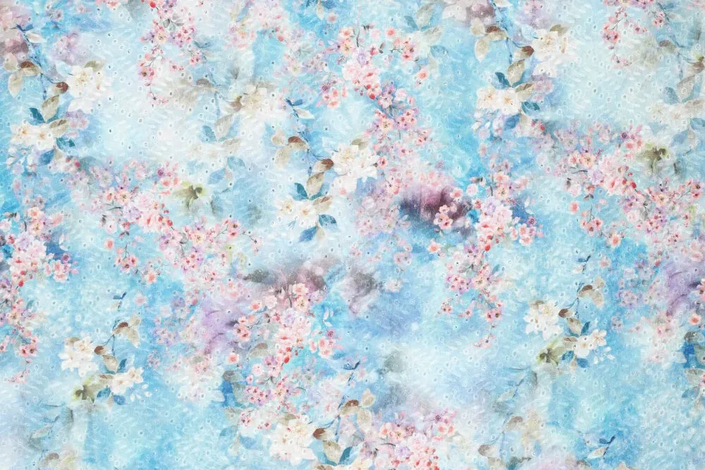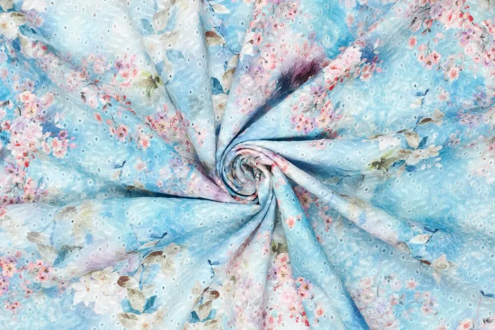 Mooie katoenen broderie stof met een bloemen print.