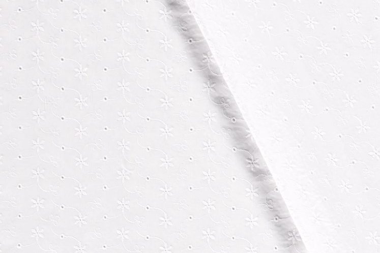 Mooie opengewerkte katoenen broderie stof met geborduurde sterren.