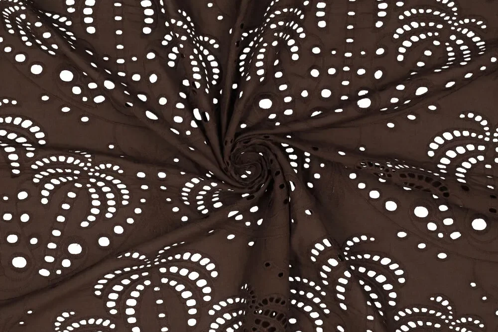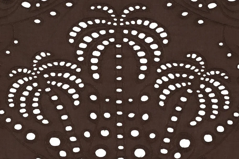 Broderie stof, opengewerkte palmbomen, bruin. P483