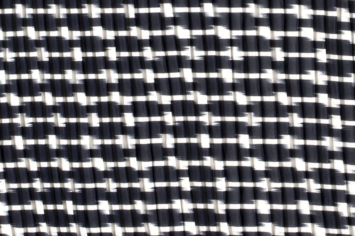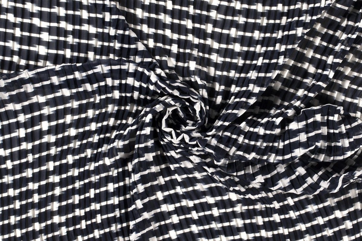Chiffon plissé stof, (dwars) streepprint, donkerblauw/off-white. Q4885