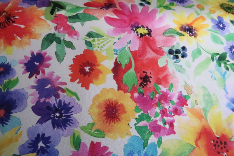 Decoratiestof outdoor, linnen look, bloemen print, off-white/geel/blauw/roze. DN006