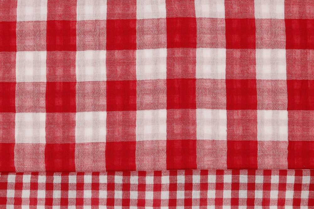 Mooie katoenen dubbeldoek stof met grote en kleine ruit, dubbelzijdig bruikbaar.