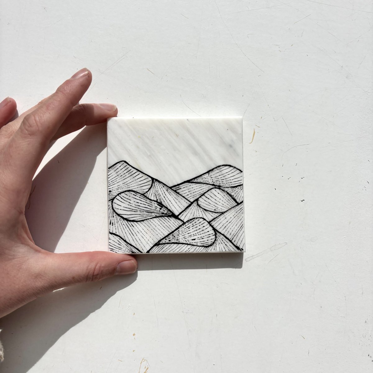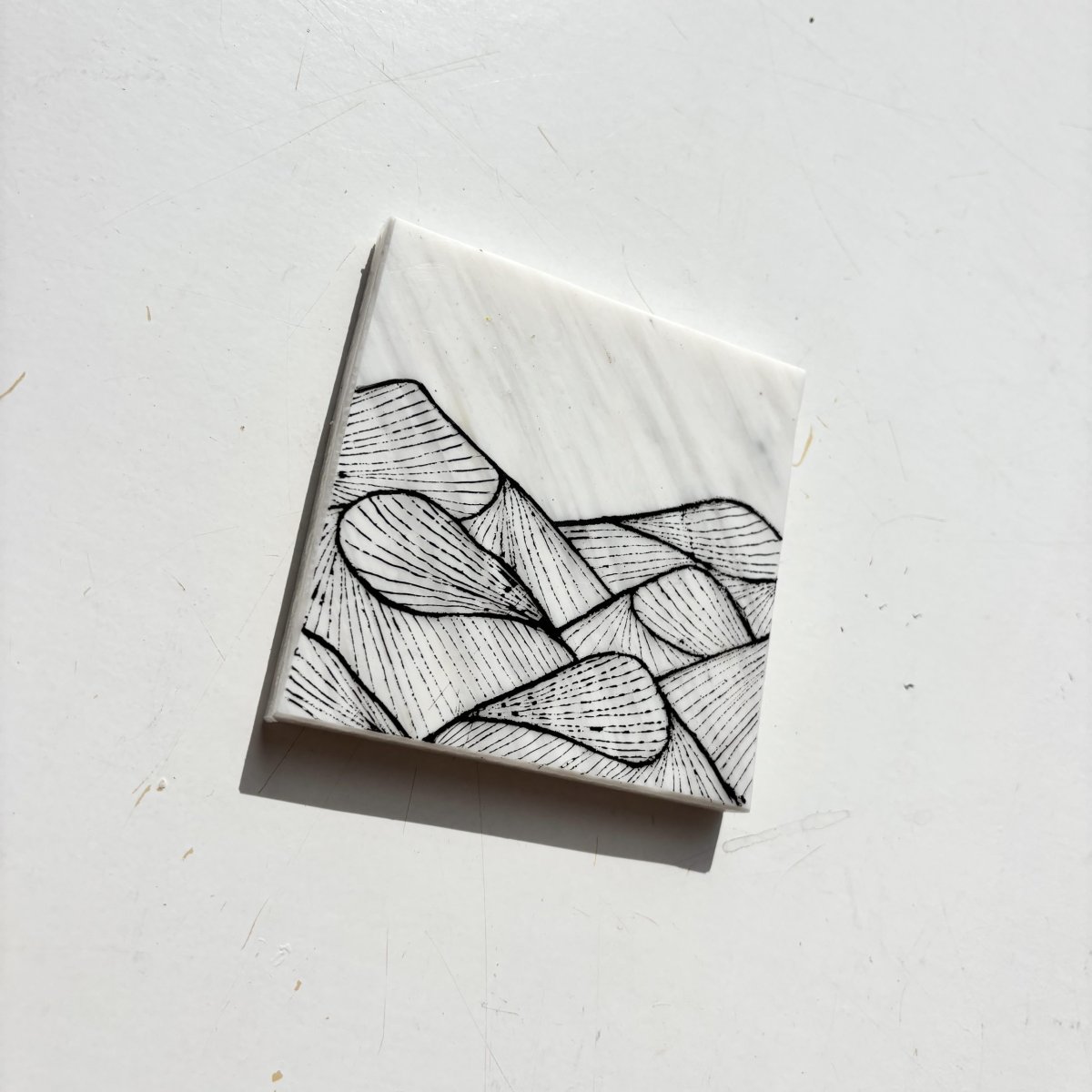 De fine line artworks worden met de hand met acrylmarkers gezet op platen gemaakt van 100% recycled plastic. Hiervoor werken we samen met Circlefied, Jutfabriek Terschelling en TZO.