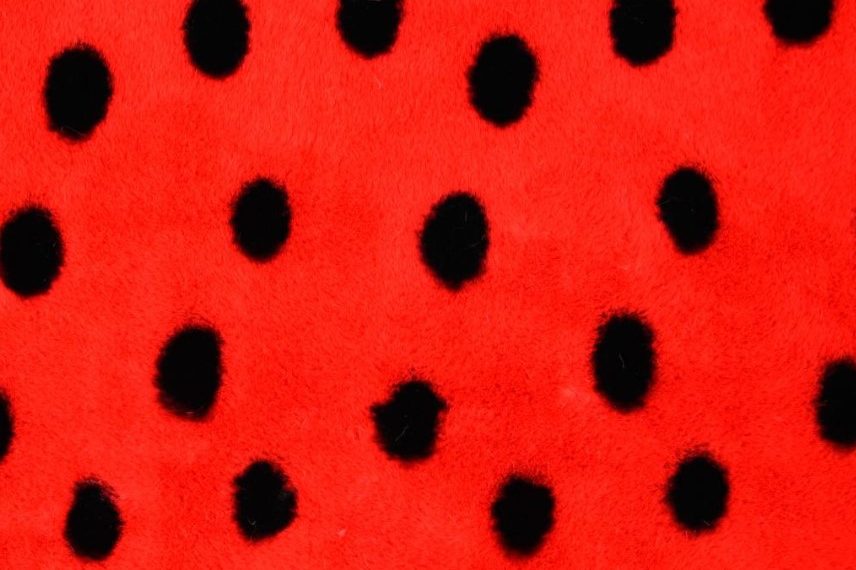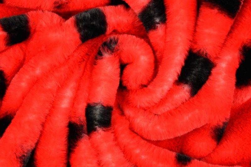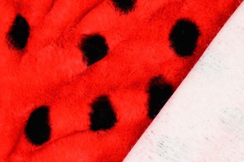 Mooie zacht aanvoelende faux fur borg stof met een lieveheersbeestje print.
