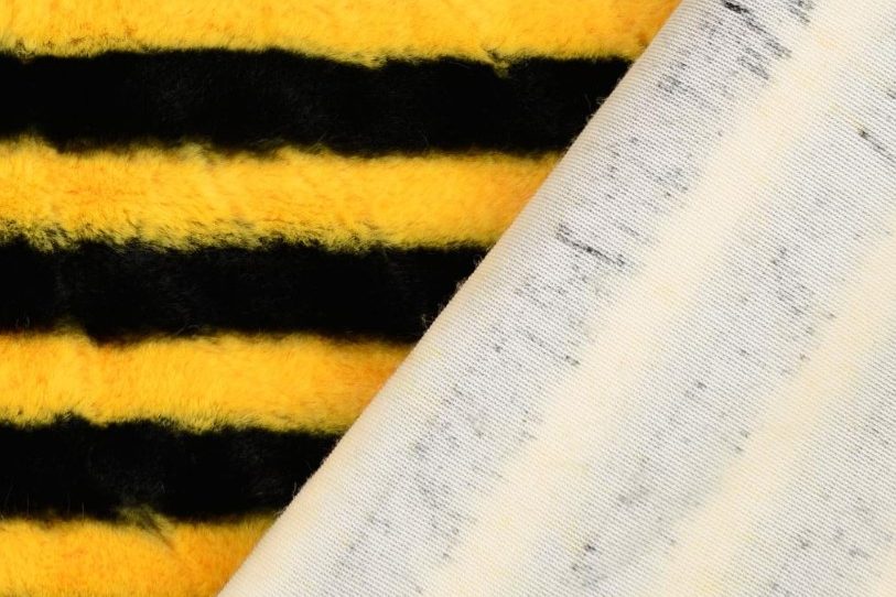 Mooie zacht aanvoelende faux fur borg stof met een streep motief.