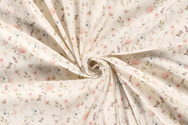 Mooie fijne rib jersey stof met een print van droogbloemen.