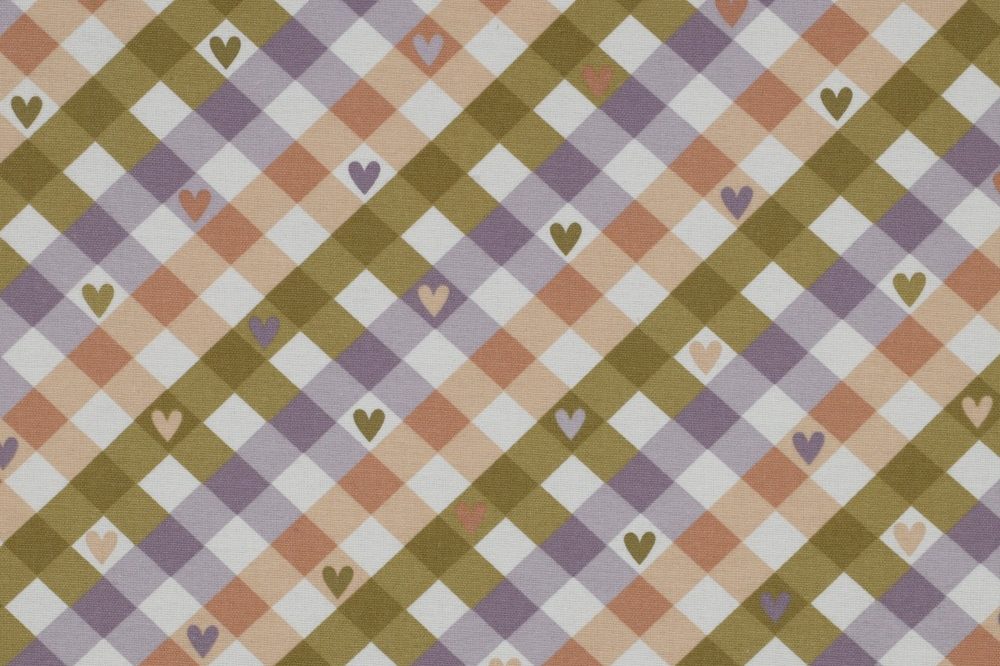 Mooie flanel stof met een print van een schuine ruit met hartjes.