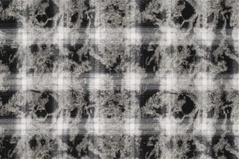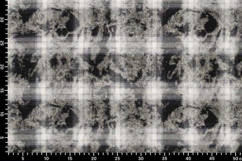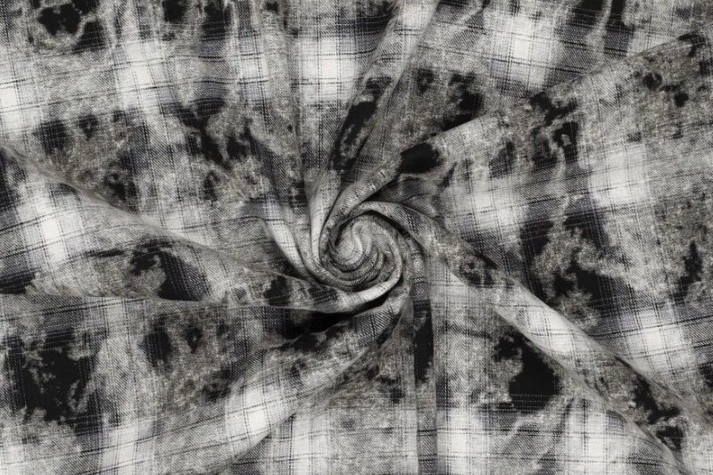 Flanel stof, tie dye ruitprint, zwart/grijs/offwhite. X972