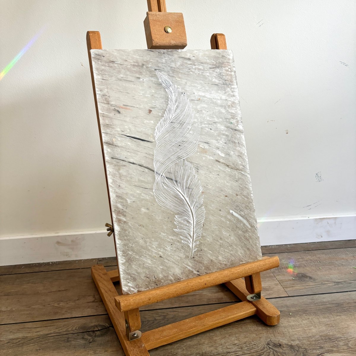 De fine line artworks worden met de hand met acrylmarkers gezet op platen gemaakt van 100% recycled plastic.
