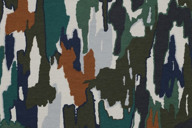 Mooie rekbare french terry sweat stof met een print van fantasie camouflage.