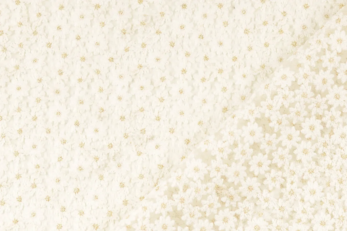 Mooie geborduurde bloemetjes op organza stof met lurex.