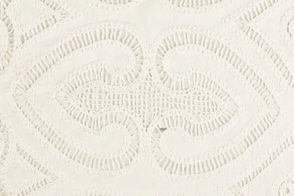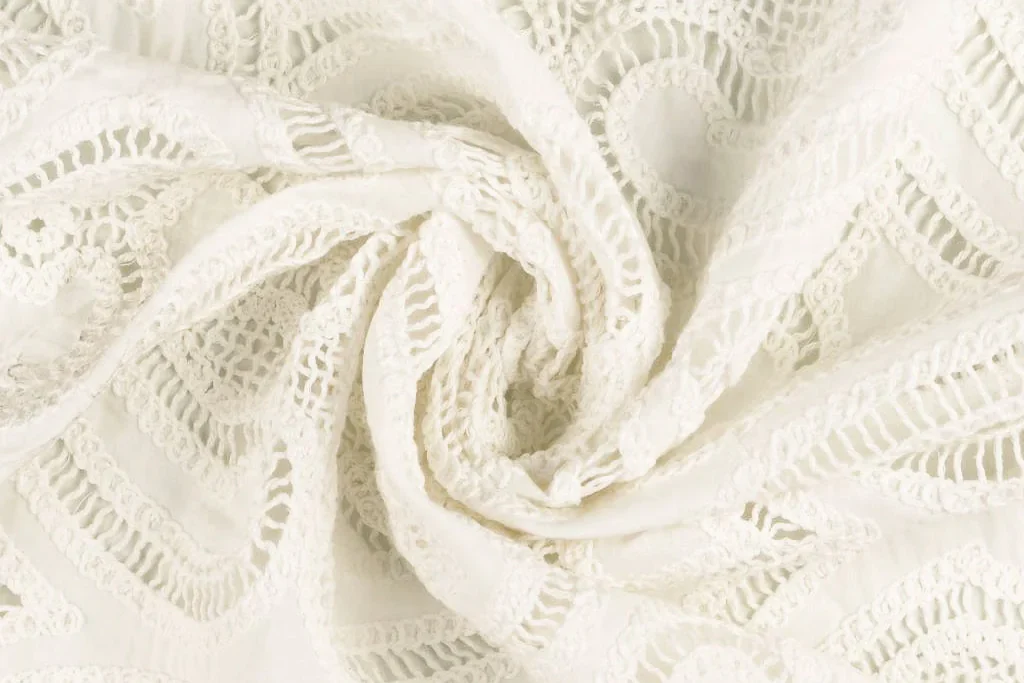 Mooie geborduurde opengewerkte katoen stof met een ornamenten motief.