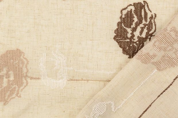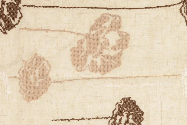 Mooie geborduurde stof met kruissteekjes klaprozen motief.
