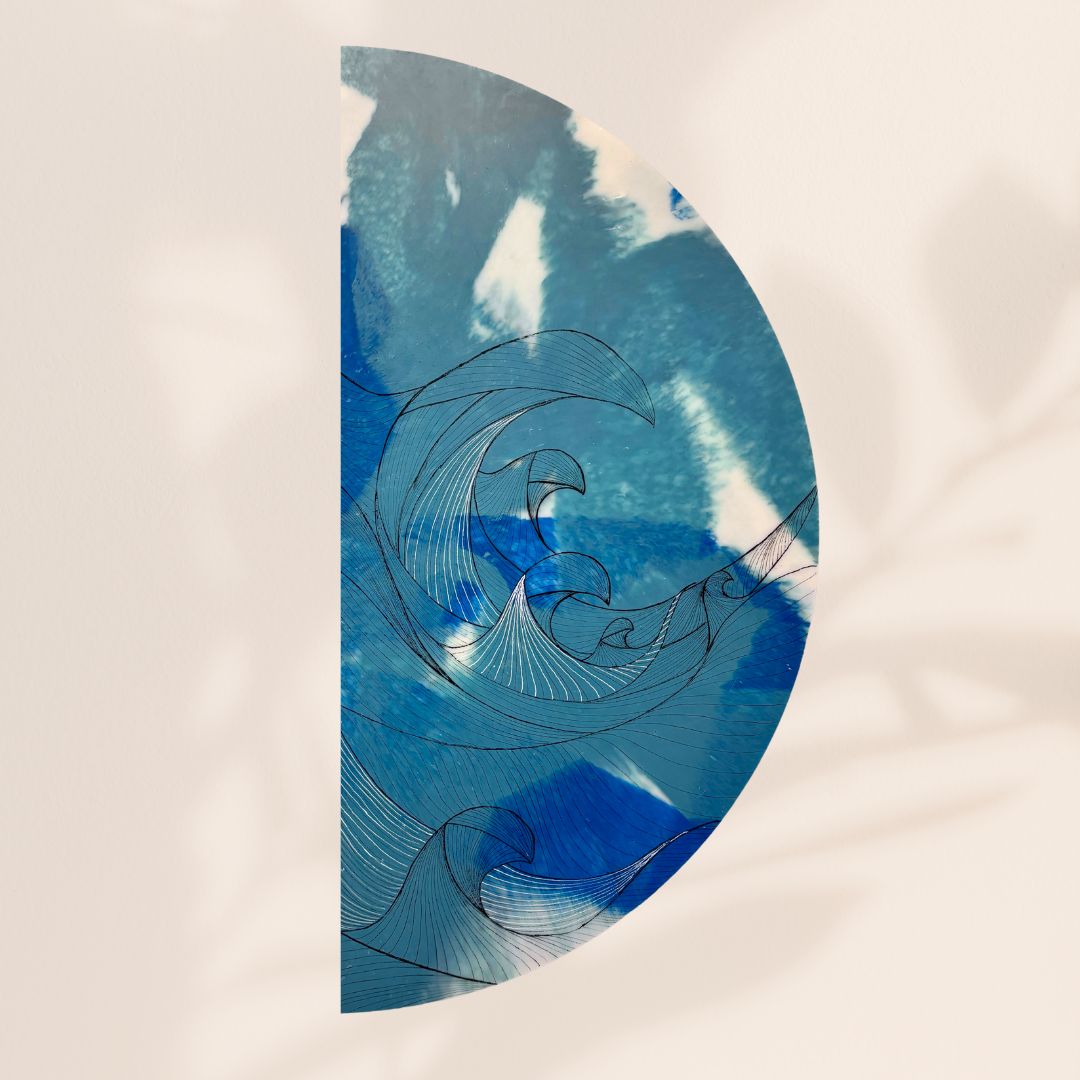 Studio Tosca werkt de plaat vervolgens af en zet er met acrylmarkers de fine line artworks op. Het werk kenmerkt zich door het spel van fijne lijnen. Deze lijnen nemen je stuk voor stuk mee. Brengen je verder of juist terug naar de basis. Bij elkaar vormen ze een geheel, zoals het leven.
