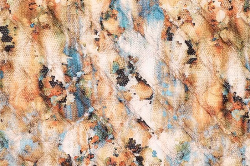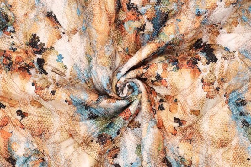 Wees de eerste om “Gestepte doorgestikte gewatteerde stof, schuine ruit met sierstiksel, slang- en bladprint, okergeel/blauw. X1172” te beoordelen