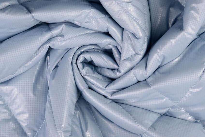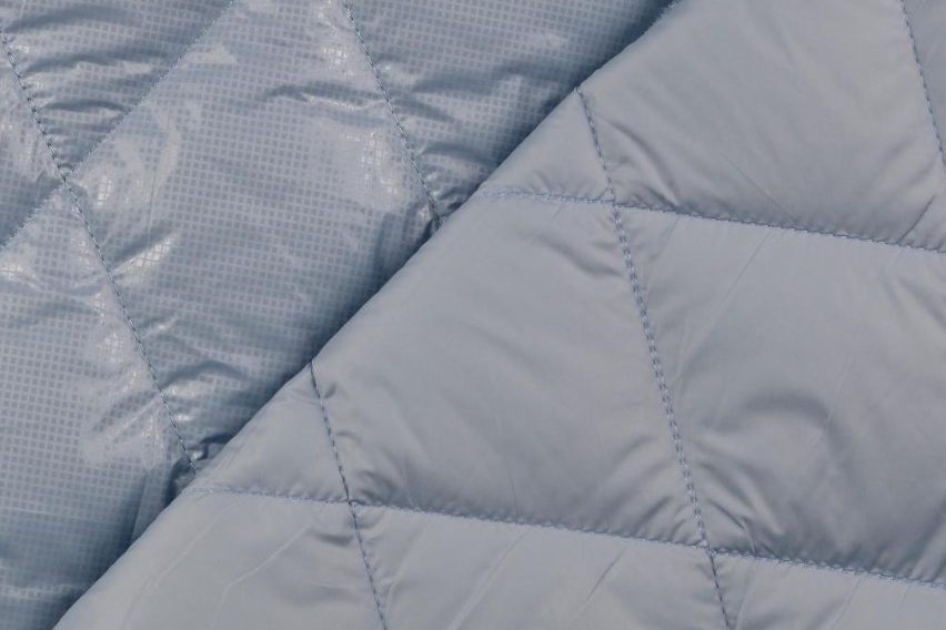 Gewatteerde en gestikte 3-laagse folie stof met een wieber motief.
