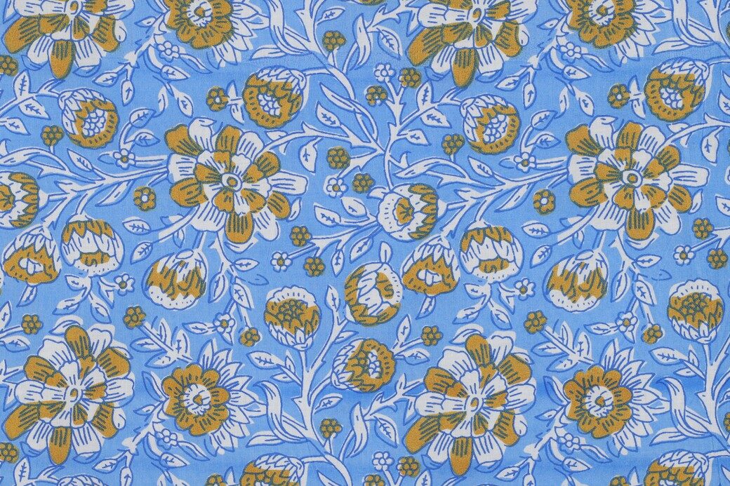 Mooie handgemaakte blokprint katoen stof met een print van bloemen.