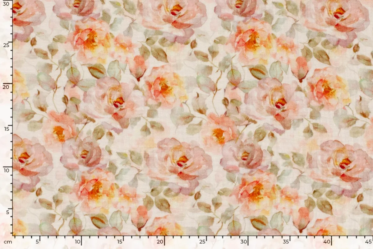 Mooie hydrofiel mousseline stof met een digitale print van rozen.