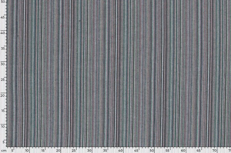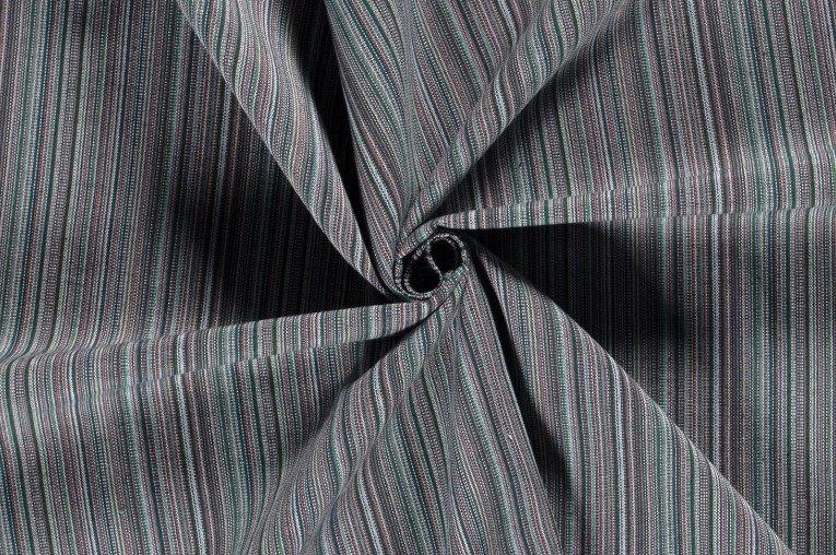 Vrolijk gekleurde stevige stof met fijne strepen.