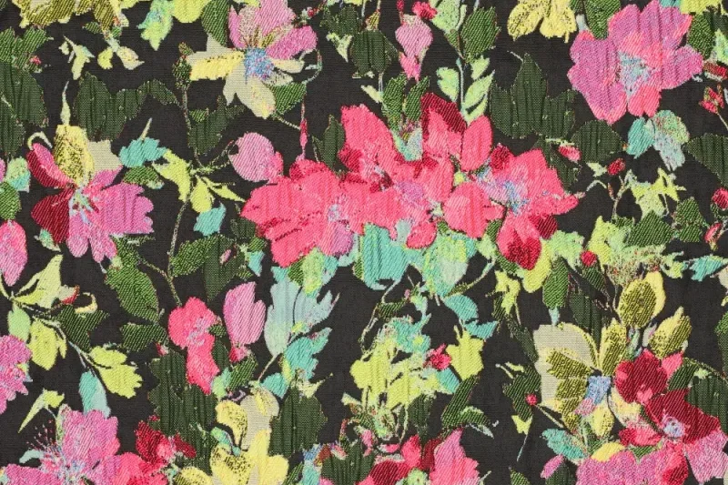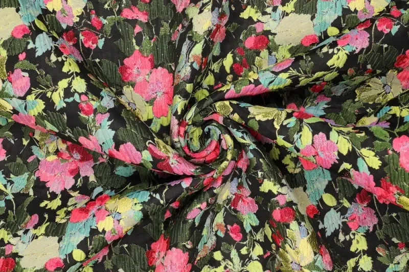Mooie jacquard stof met een bloemenveld print.
