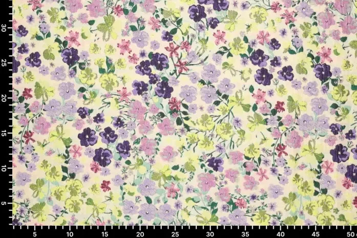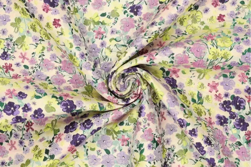 Mooie jacquard stof met bloemetjesprint.
