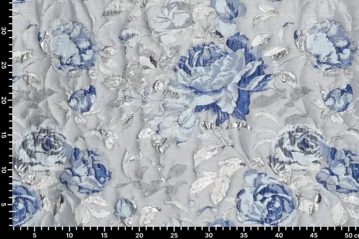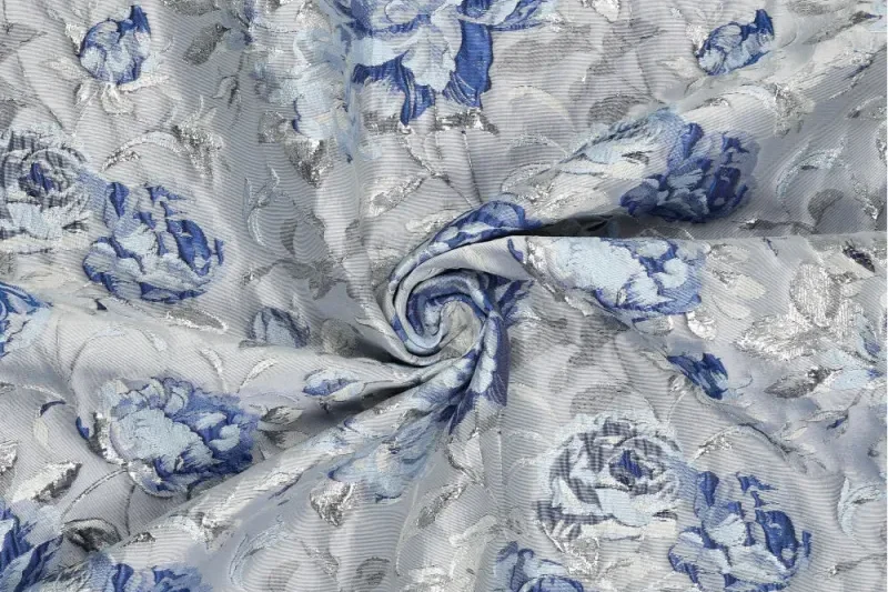 Mooie glanzende jacquard stof met een print van rozen.