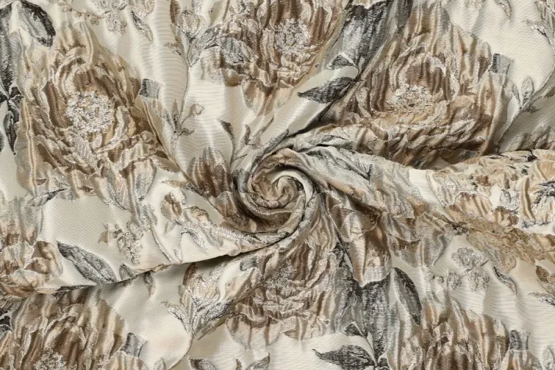 Mooie glanzende jacquard stof met een print van rozen.