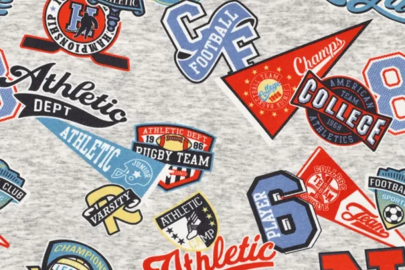 Mooie jogging stof met een borg binnenzijde en een print van league ballprint.