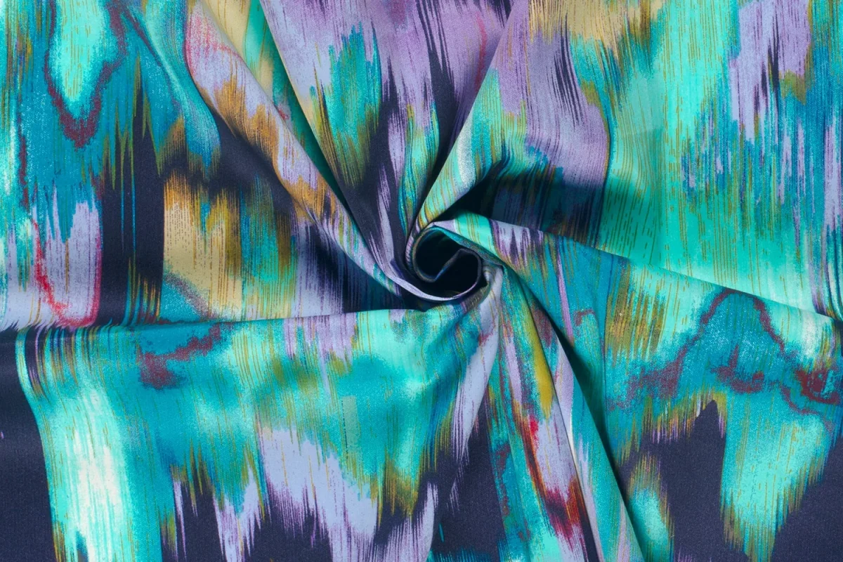 Mooie katoen satijn stof met een abstracte print.