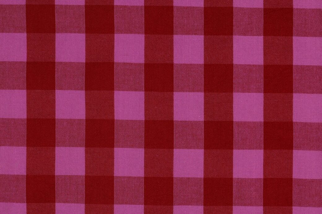 Katoen stof, garen geverfd, ruit motief, fuchsia/rood. P612