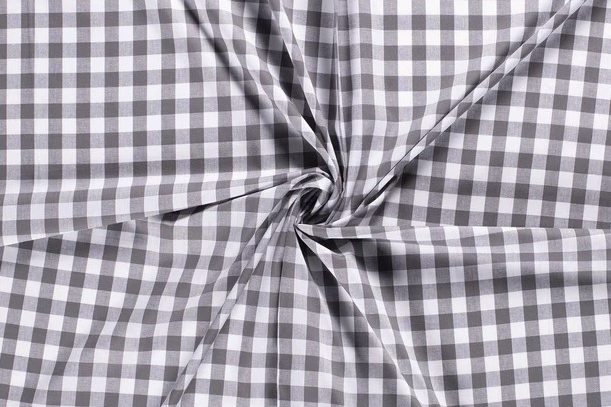 Katoen stof, ruit print midden grjis met wit. 1.5R068
