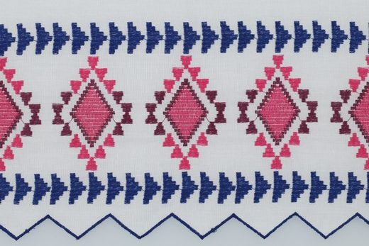 Mooie katoenen voile rand stof met een bewerkte rand aan een zijde.