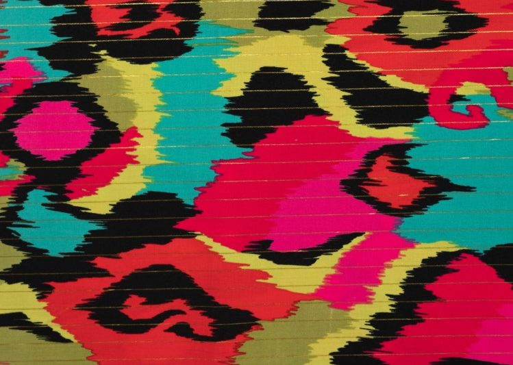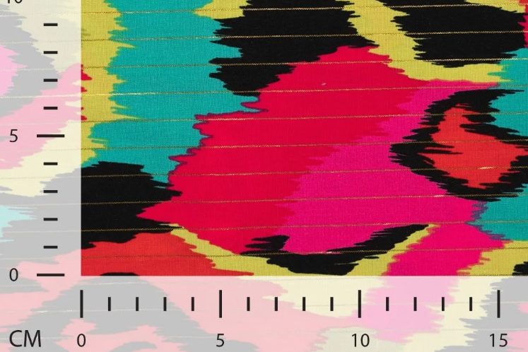 Mooie katoenen voile stof met een print van fantasie en een lurex streepje.