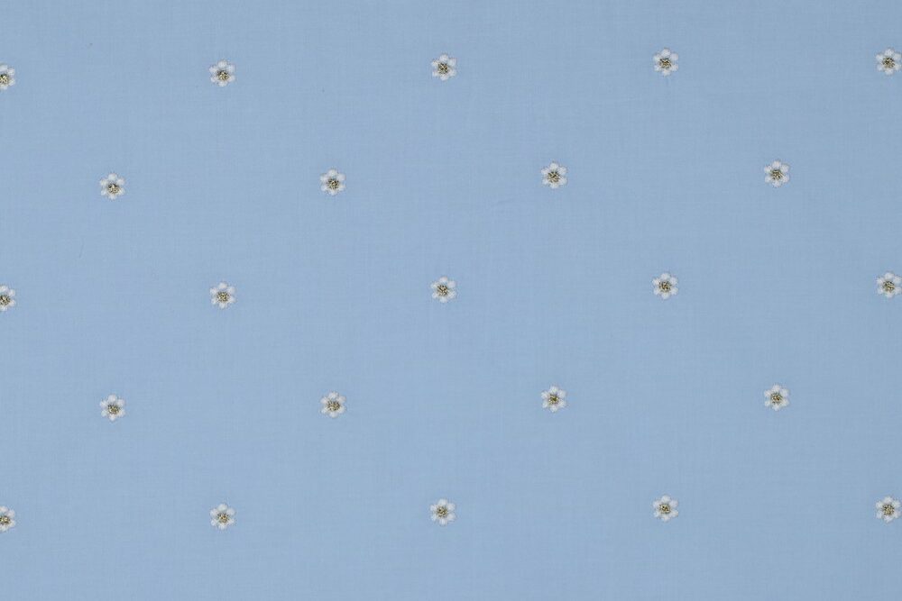 Mooie katoen voile stof met geborduurde kleinen bloemen met gouden hartjes.