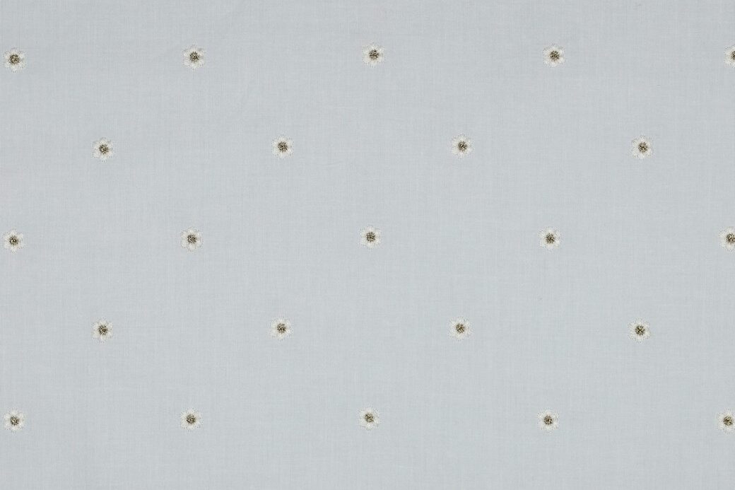 Mooie katoen voile stof met geborduurde kleinen bloemen met gouden hartjes.