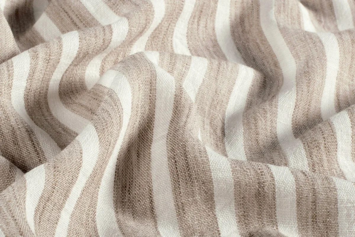 Mooie linnen look stof met een streep motief in een melange kleur.