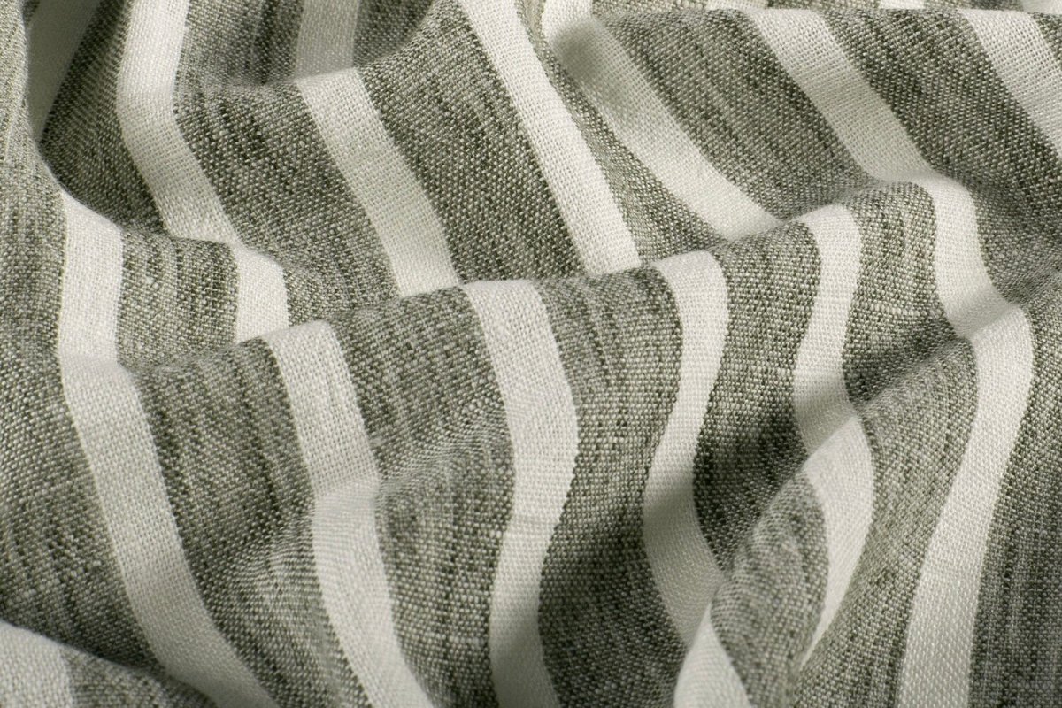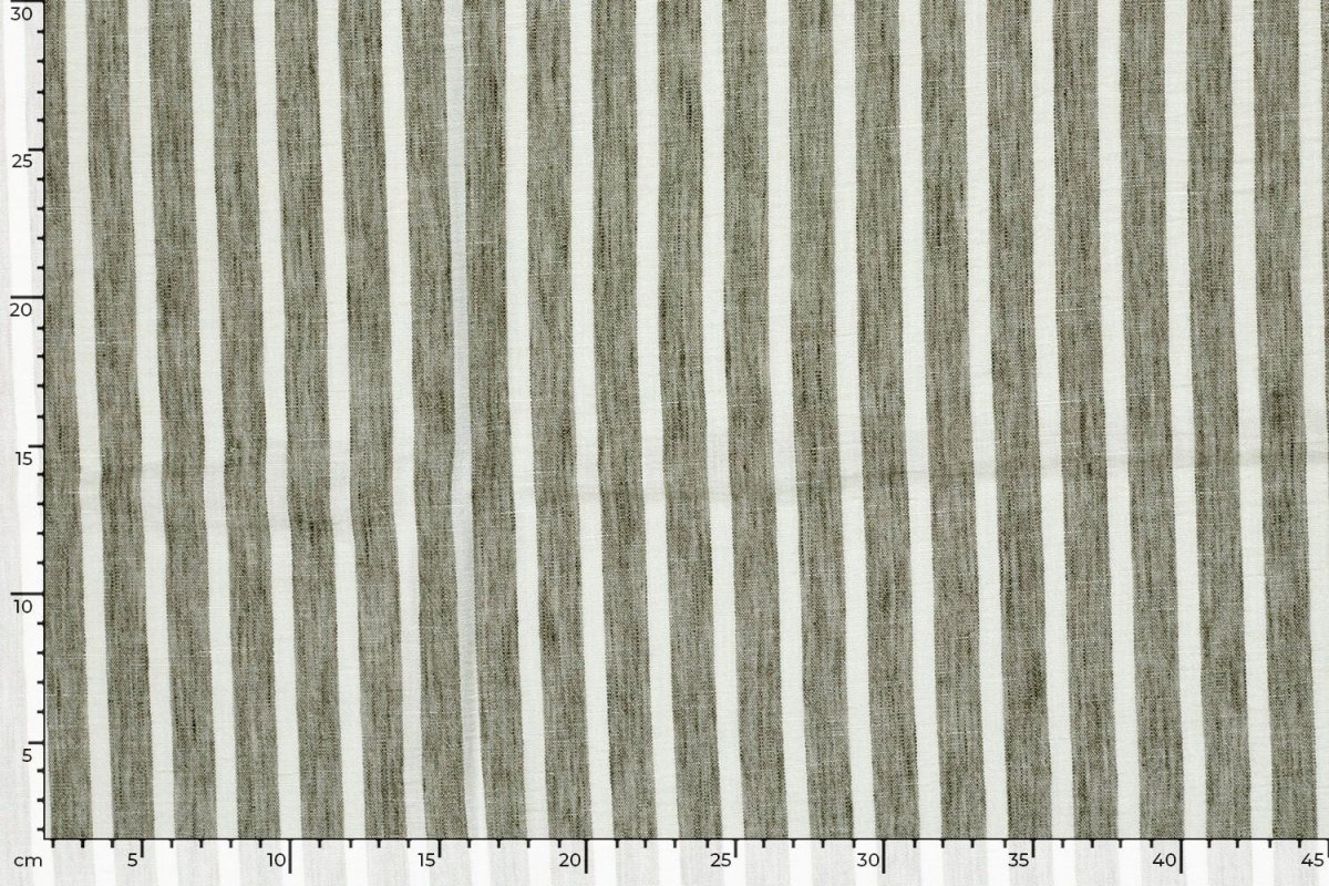 Linnen look stof, streep motief, melange, groen/wit. P309