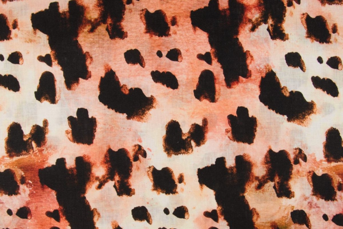 Linnen stof, panter/fantasieprint, oranje. Z0306
