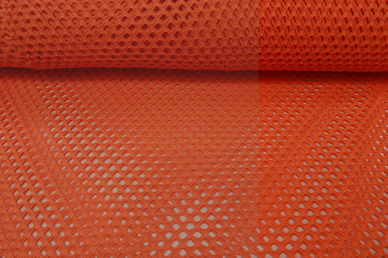 Lycra gaatjes stof, opengewerkt grote mazen, oranje, X2508