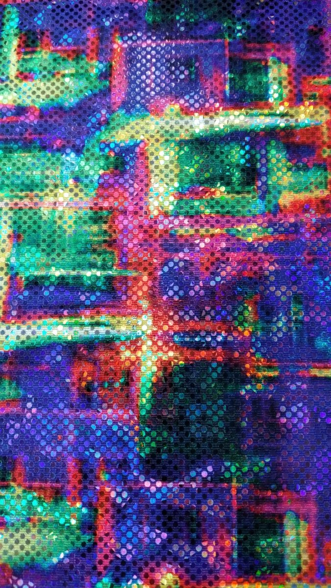 Mooie rekbare lycra stof met een vrolijke disco print .