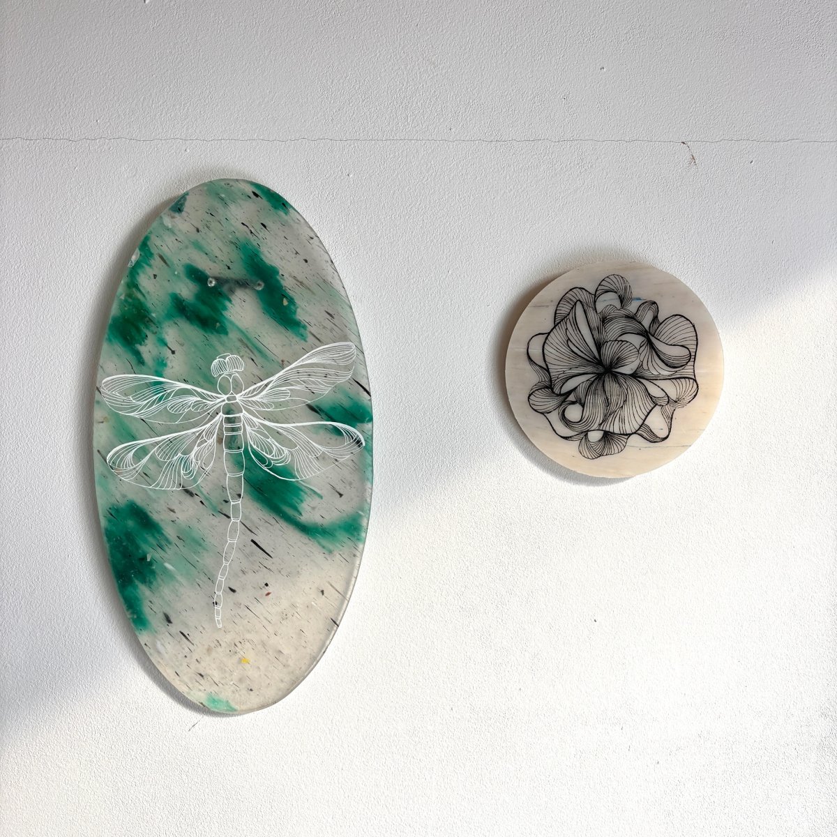 Deze werken zijn gemaakt op 100% recycled plastic en kunnen daarom krasjes, butjes en onregelmatigheden vertonen. Stuur een berichtje voor een close-up!
