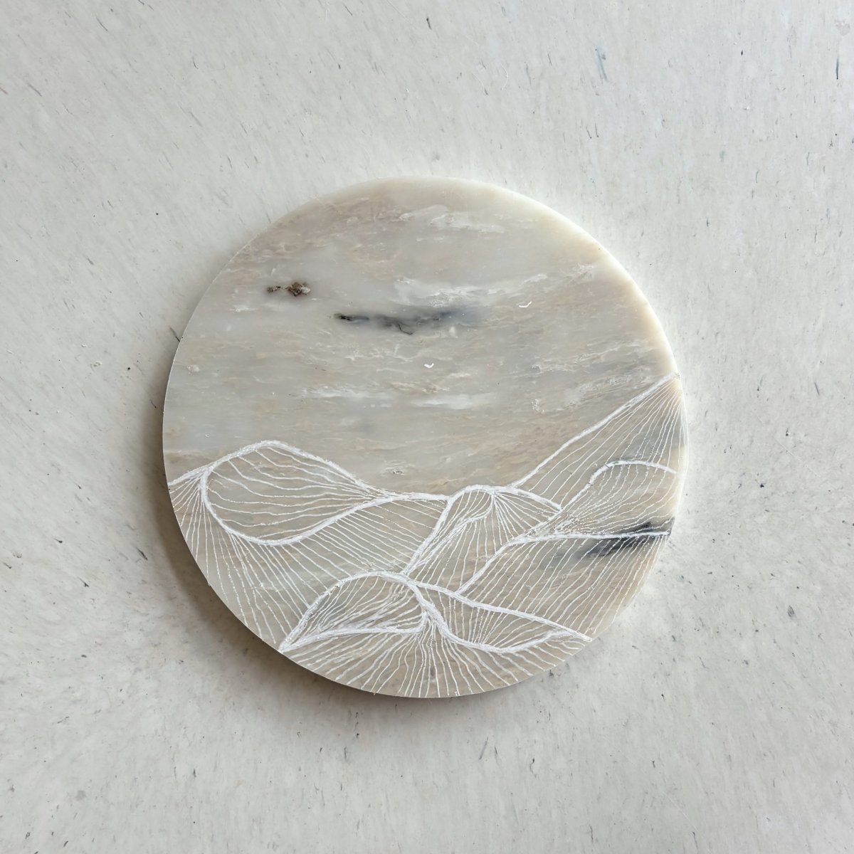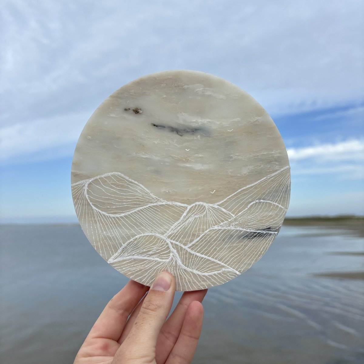 De fine line artworks worden met de hand met acrylmarkers gezet op platen gemaakt van 100% recycled plastic.