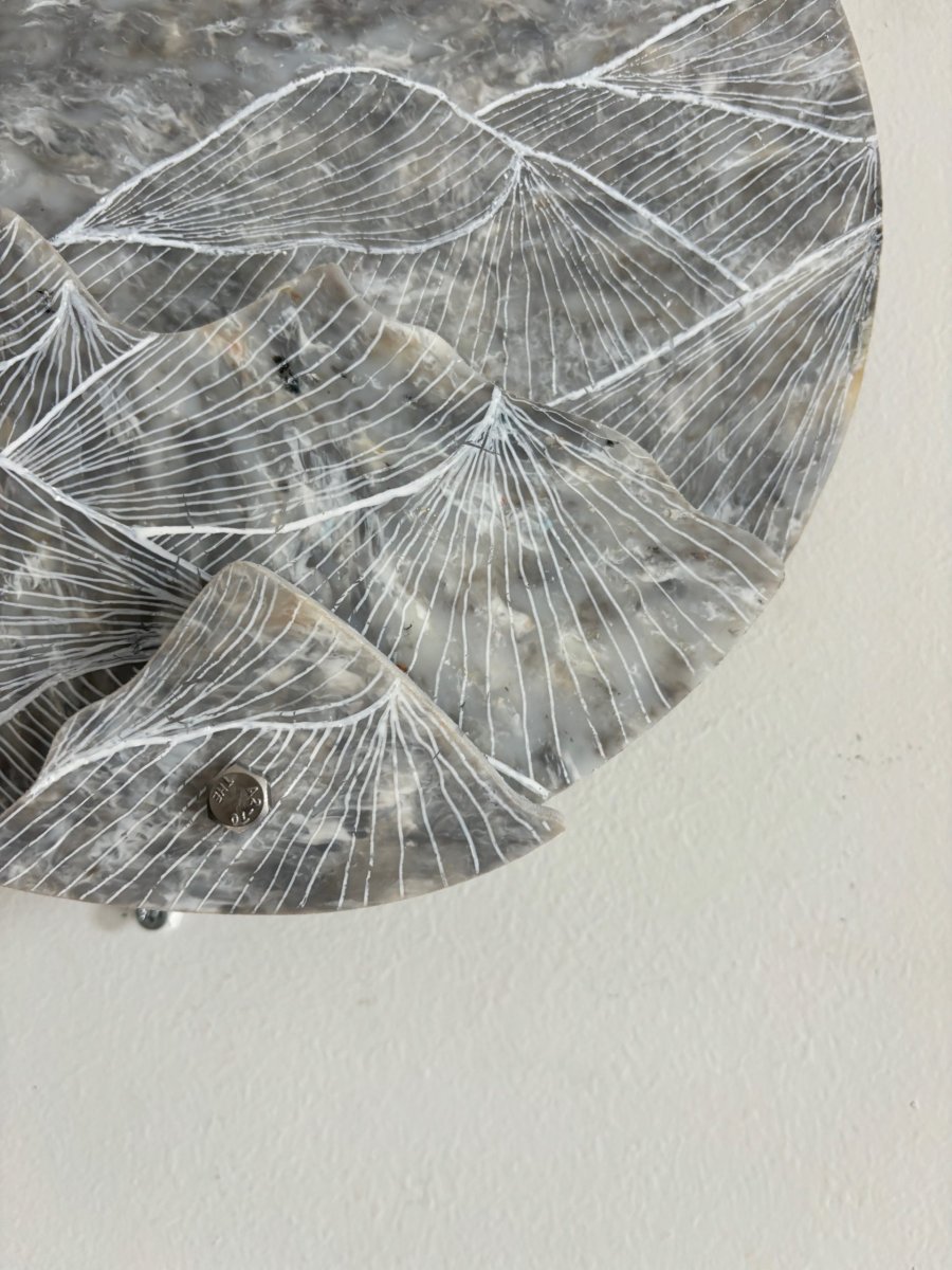 Studio Tosca werkt de plaat vervolgens af en zet er met acrylmarkers de fine line artworks op. Het werk kenmerkt zich door het spel van fijne lijnen. Deze lijnen nemen je stuk voor stuk mee. Brengen je verder of juist terug naar de basis. Bij elkaar vormen ze een geheel, zoals het leven.