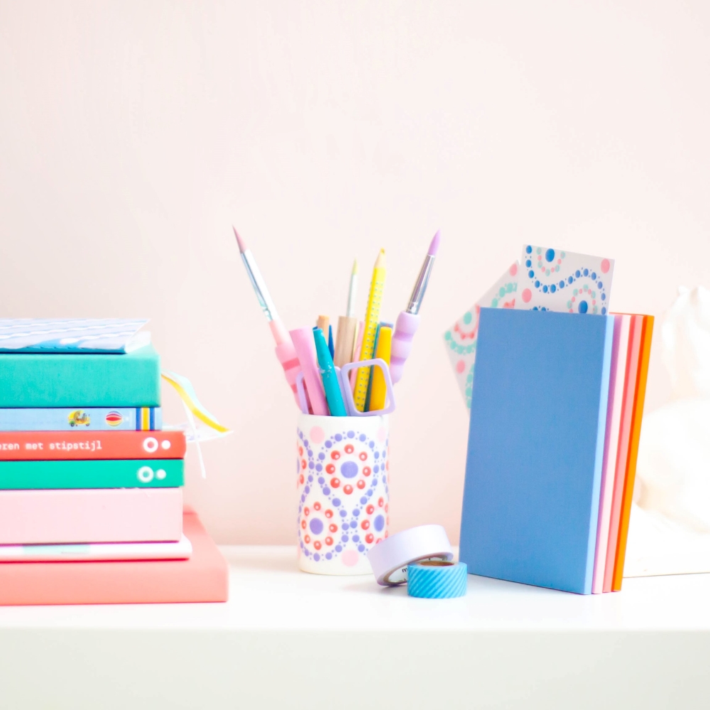 * Je hoeft geen 3 potjes verf te kopen, je kunt ook verf mengen. Kies bijvoorbeeld wit + je favoriete kleur. Daarmee maak je nuances.